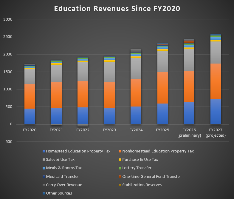 Sadly this news was inevitable. While the Legislature, the Governor, and local Vermonters negotiate over what the next iteration of public education looks like in our state, they bought down property taxes last year using one-time monies. The Governor and the Legislature were both in alignment on this, but these one-time funds[1] created a $98 million hole for property taxes to fill in FY2027 (which is the 2026/2027 school year) before schools even spent a dollar more.