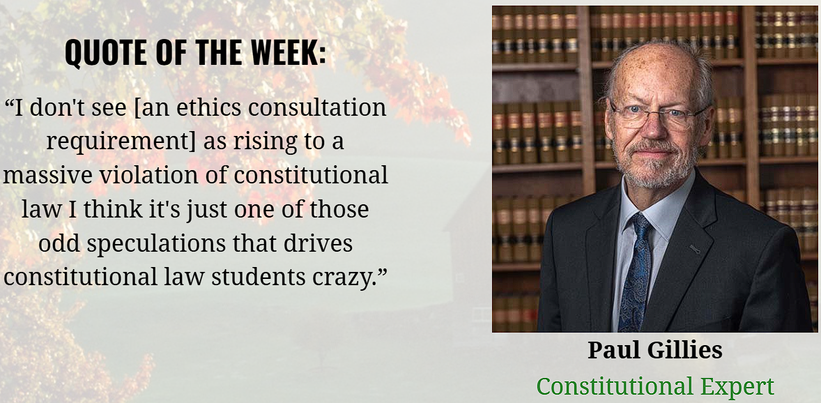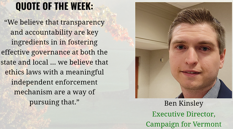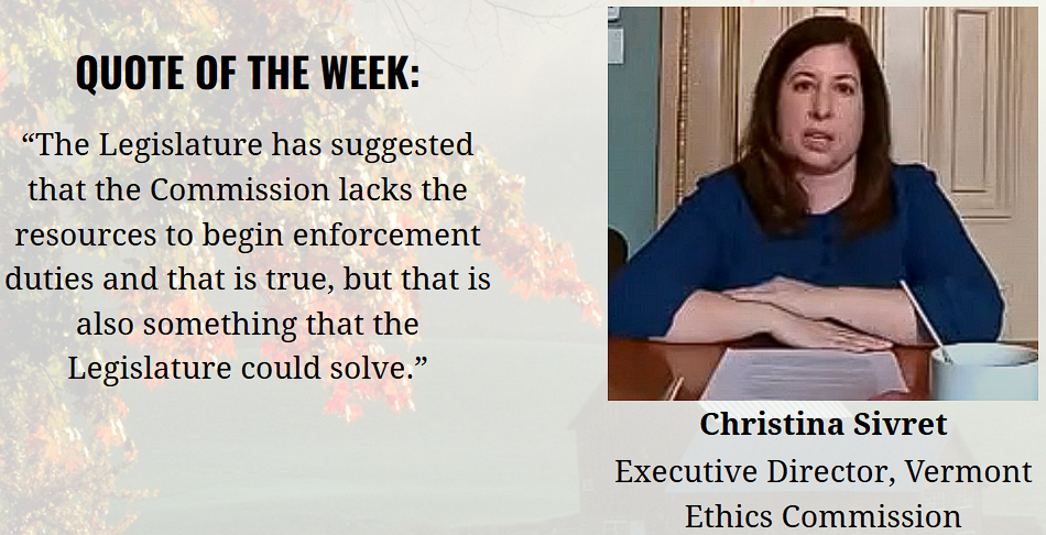 I testified this week in the Senate Government Operations Committee, urging them not to close the door on independent oversight for the Legislative and Judicial branches of State government. As I am sure you are aware, the House passed a bill that would remove a requirement that these two branches consult with the statewide Ethics Commission; this is a concerning step backwards in the progress we have made in the last decade around Vermont ethics reform.